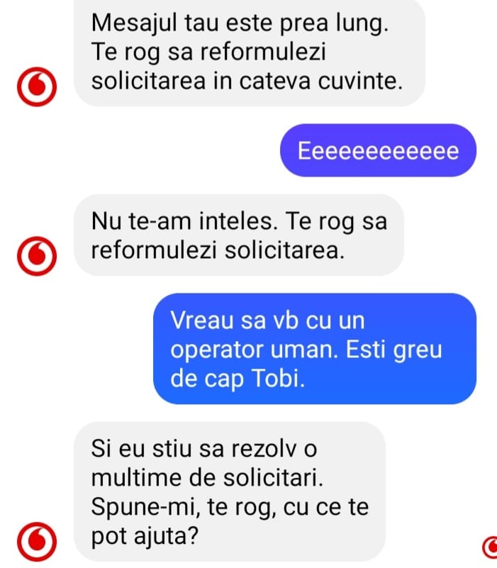 Între timp, lasând la o parte luptele politice, dacă ești un client nemulțumit de faptul că nu poți vorbi cu un operator uman la serviciile de relațiile cu clienții, în mare parte, nu poți face nimic. Fie folosești metodele alternative de contact (e-mail, rețele sociale sau magazine fizice etc), fie te muți la alt operator … până găsești unul care încă te tratează cu respect fără să îți ceară bani în plus că l-ai deranjat cu o problemă.