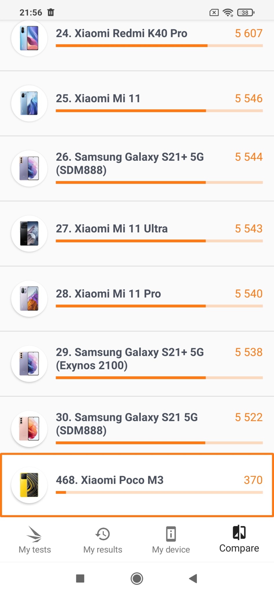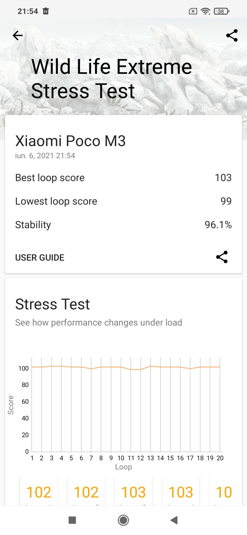 In tesul de performanta 3D Mark, Poco M3 s-a clasat pe locul 468, dintr-un numar de 533 de modele de telefoane testate. Altfel spus telefonul se descurca mai bine decat alte 12% produse. Rezultatele nu sunt imbucuratoare daca este sa ne uitam la scorul general al telefonului in comparatie cu media din clasament.