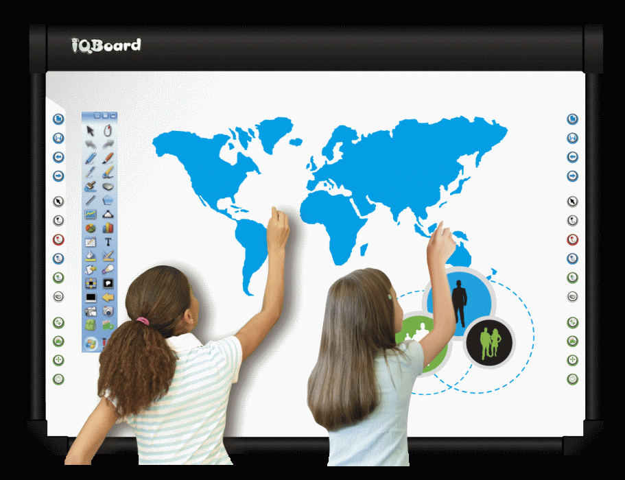 La fel, in functie de capabilitatile sistemului achizitionat, puteti folosi functii precum touch recognition sau hand-writing recognition. Cu ajutorul acestor functii puteti sa scrieti, selectati si mutati obiectele cu degetul sau markerul si stergeti ceea ce a fost desenat cu palma. De asemenea scrisul de mana este recunoscut si transformat in scris digital.